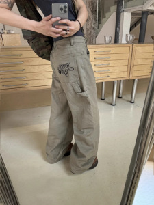川川也原创美式宽松直筒刺绣腰带绳工装裤男女复古街头阔腿长裤潮