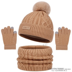 跨境亚马逊秋冬新款儿童帽子围脖手套三件套男女童加绒加厚帽子