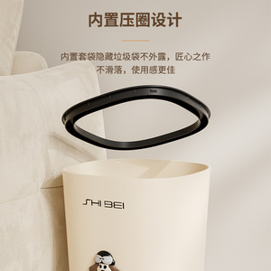 卡通垃圾桶家用客厅卫生间厨房卧室大容量奶油风按压带盖压圈纸篓