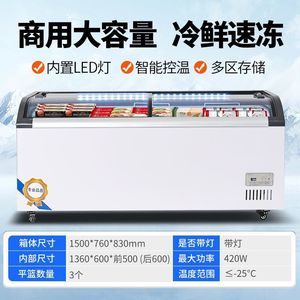 冰箱商用卧式冰柜冷冻柜大容量超市便利店透明玻璃冷藏雪糕展示柜