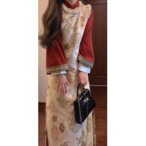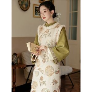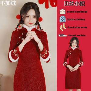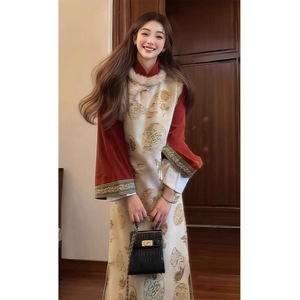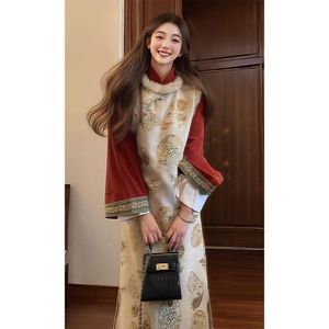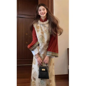 新中式气质红色旗袍连衣裙女装2025新款加绒加厚马甲国风禅意套装