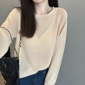文艺少女~马卡龙色系空气感针织罩衫微透松弛打底针织衫女25早秋