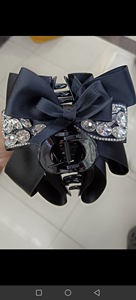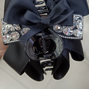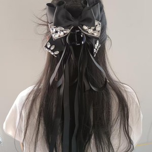 黑色-闪钻蝴蝶结长飘带马尾夹