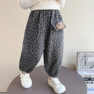 女童秋装裤子2025新款韩范痞帅小女童装洋气儿童豹纹裤小童春秋款