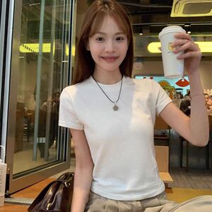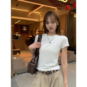 宋正恩薄荷绿正肩短袖t恤女夏季新修身短圆领辣妹百搭衣潮
