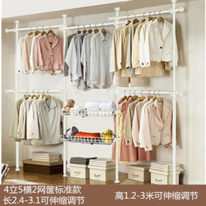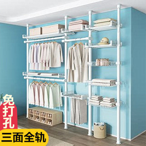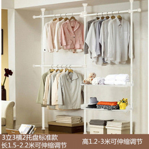 创意简约现代多功能衣帽架卧室储物收纳衣架落地组装不锈钢伸缩式