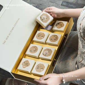 中秋月饼折叠礼盒手提定 制加急现货创意空盒6/8粒包装盒