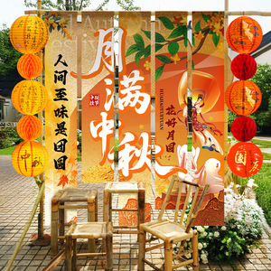 中秋节挂布2025新款商场场景氛围布置装饰品店铺景区打卡拍照条幅