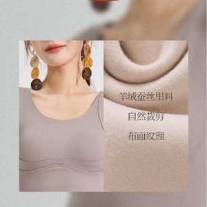 秋冬大码德绒羊毛保暖内衣女加绒加厚带胸垫免穿文胸背心打底上衣