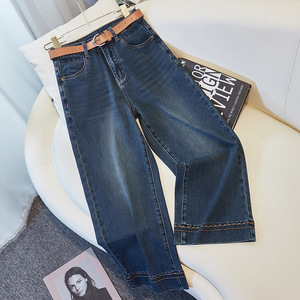 妙臻秋季爆款高腰奶奶裤牛仔烟管阔腿裤女百搭阔腿裤九分裤女3325