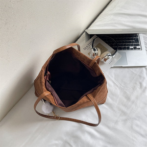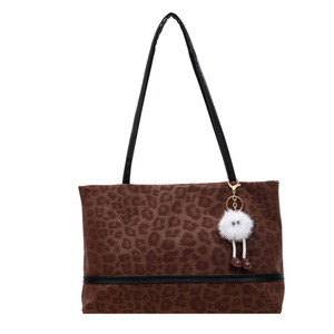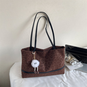 复古鹿皮绒大容量手提托特包包女2025新款百搭豹纹简约腋下单肩包