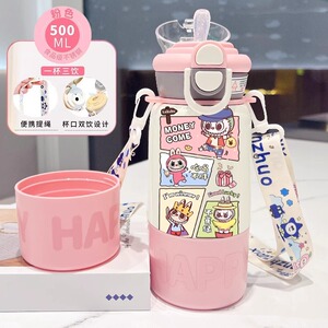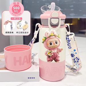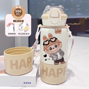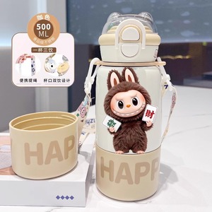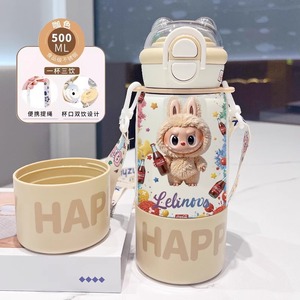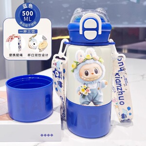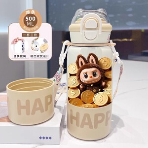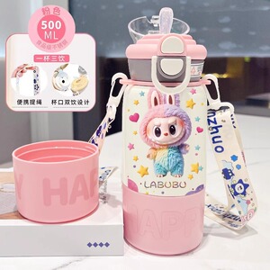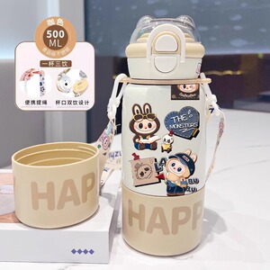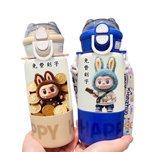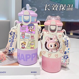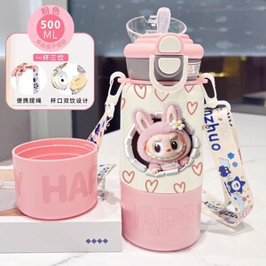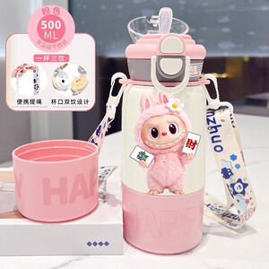 labubu拉布布保温杯儿童2025新款双杯盖水杯学生用上学便捷保温壶