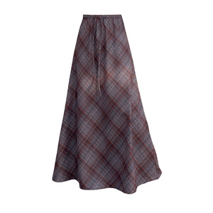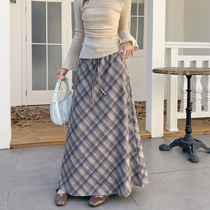 复古气质格纹半身裙女秋季高腰显瘦抽绳包臀长裙遮胯A字大摆伞裙