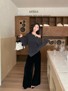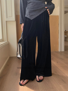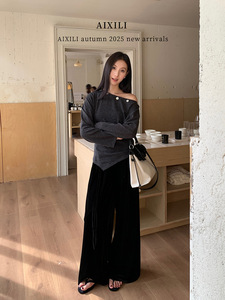 爱西里2025秋高级感简约气质百搭显瘦垂感丝绒阔腿休闲裤A1582