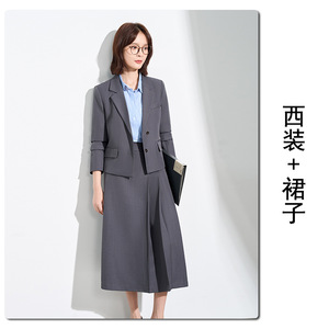 灰色西装+裙