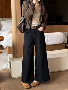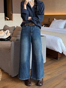 十三行女装辣妹复古大阔腿牛仔裤女秋季高腰宽松小个子直筒九分裤