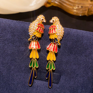 24#银针-彩色长款鹦鹉耳钉(14K真金电镀)