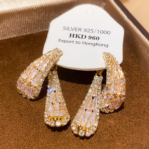 21#银针-金色锆石水滴两戴耳钉