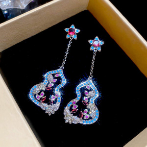 52#银针-蓝色锆石葫芦耳钉