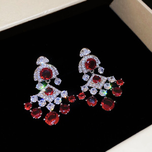 62#银针-红色锆石爱心流苏耳钉