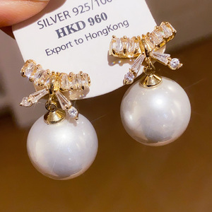 5#银针-白色锆石珍珠圆球耳钉