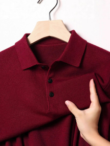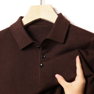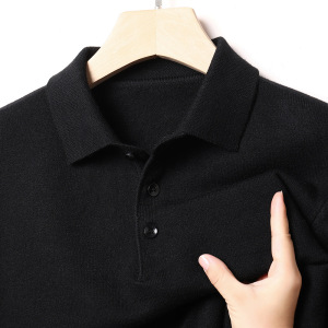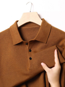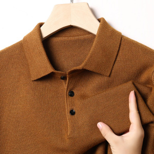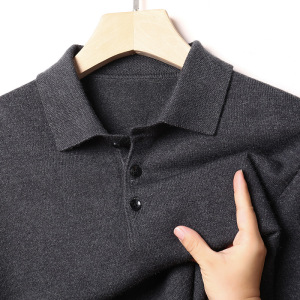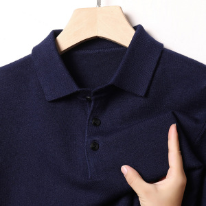 跨境外贸翻领长袖针织衫毛衣男士秋季薄款休闲纯色中年打底针织衫