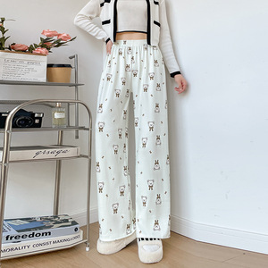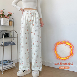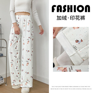 秋冬季遛弯裤子棉纱睡裤女休闲宽松长裤2025新款冬可外穿家居裤