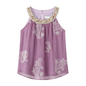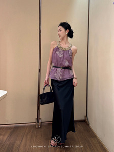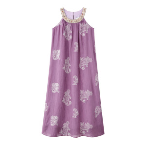 鹭青一原创【莺燕语】复古天丝绣花连衣裙女夏紫色吊带裙珠片上衣