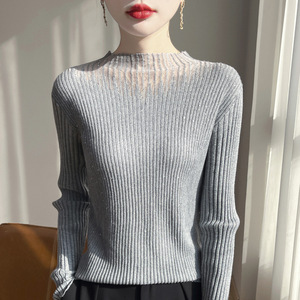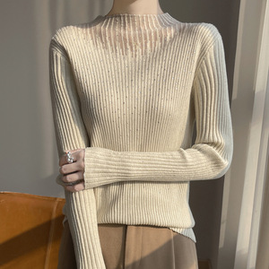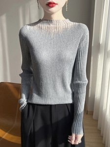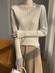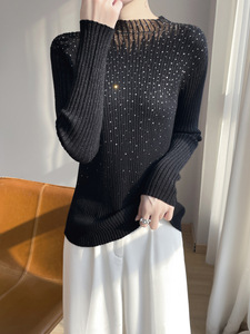 修身百搭新款女士羊毛衫小众设计烫钻毛衣内搭纯色女士毛衣打底衫