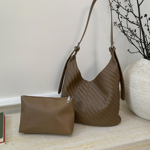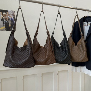跨境超大编织包软皮女士单肩包厂家手工编织手提包时尚简约子母包