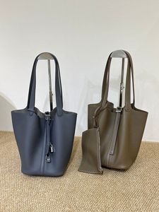 跨境TC皮头层牛皮高级腋下单肩高级感2025菜篮子真皮大容量水桶包