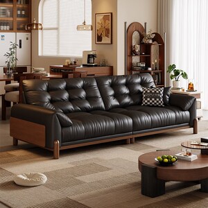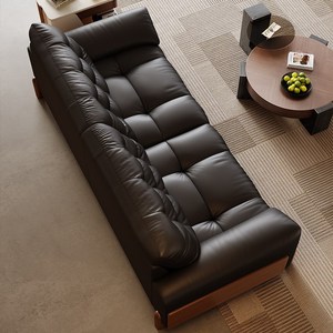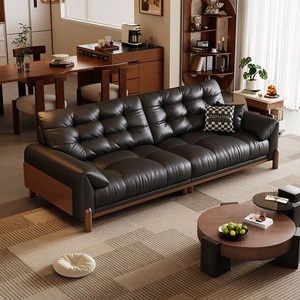 中古风客厅实木沙发复古大象耳朵2025新款小户型云朵黑色皮艺沙发