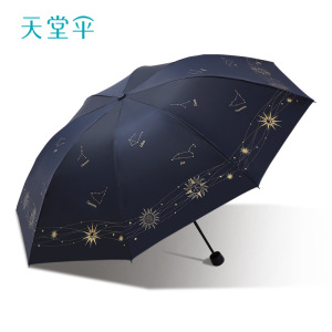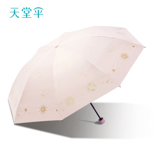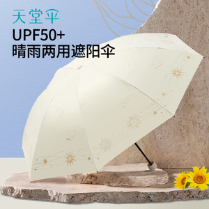 天堂伞开学季高颜值防晒防紫外线雨伞三折加厚黑胶晴雨两用遮阳伞