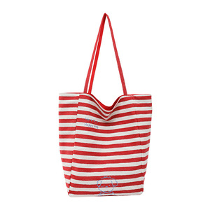 条纹双面包帆布袋韩系慵懒风托特包红色学生大容量休闲单肩包黑白
