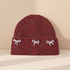 秋冬帽子新款原创设计款2025新款三小珍珠蝴蝶结针织帽保暖毛线帽