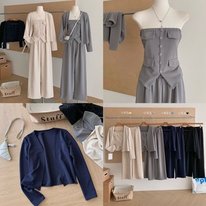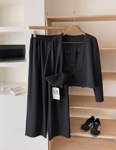 2025秋季新款韩系气质休闲针织开衫修身抹胸背心高腰阔腿裤三件套