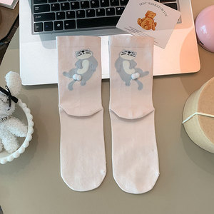 猫蛋蛋袜子女2025秋季新款卡通可爱中筒袜韩系趣味搞怪大橘猫袜子