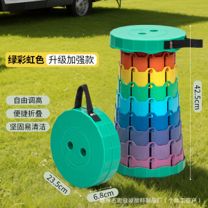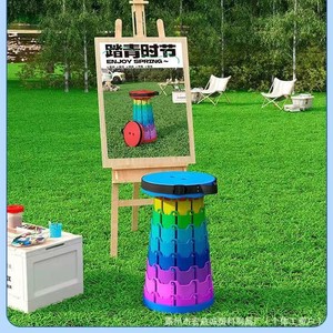 户外钓鱼露营便携折叠凳旅行塑料伸缩家用收纳省空间彩虹圆凳批发