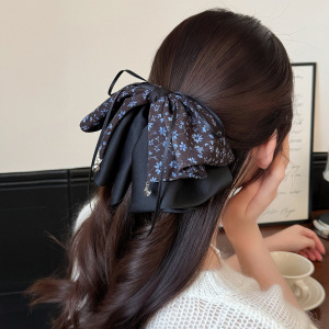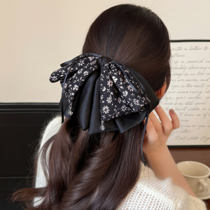 复古秋季网红碎花立体蝴蝶结抓夹显发量鲨鱼夹后脑勺时尚马尾夹女