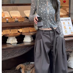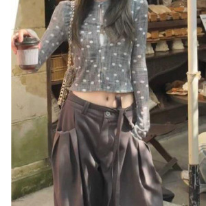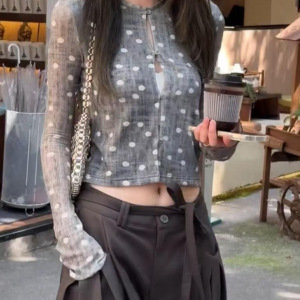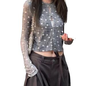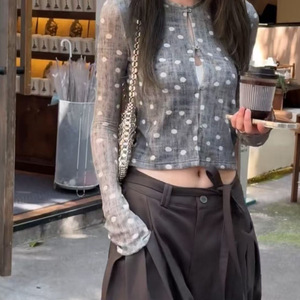 2025早秋新款印花波点短款长袖针织开衫小众辣妹灰色其它开衫款