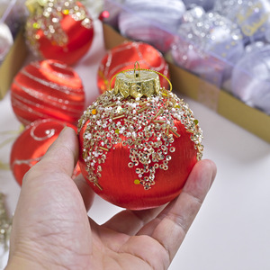 2025新款碎钻圣诞球挂饰银白红香槟配色圣诞树装饰高级质感圣诞球