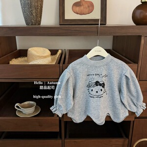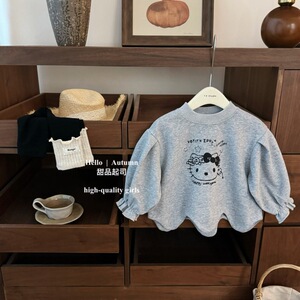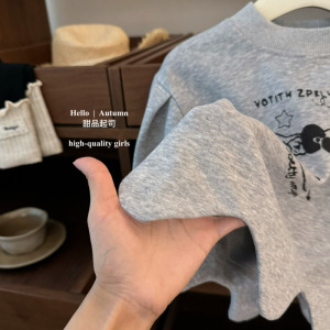 搭配天菜!女宝宝甜美灰色卡通不规则卫衣打底裤套装31082