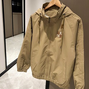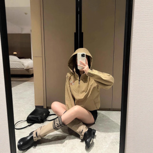 LW25秋冬新款设计感时尚抽绳连帽卡其色冲锋衣外套