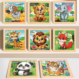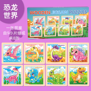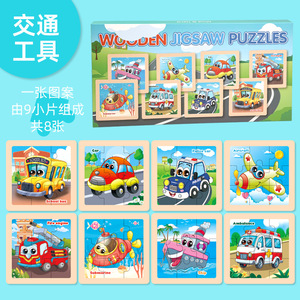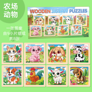 跨境儿童木质拼图3-6岁宝宝卡通9片拼板动物森林主题早教启蒙玩具