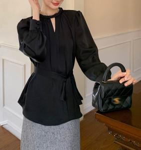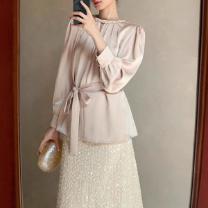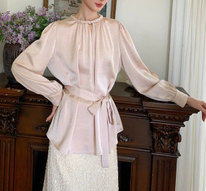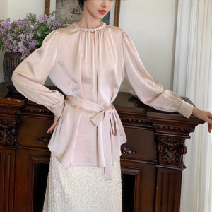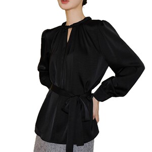 南油代发2025秋款法式扭结式拼接领飘带19姆米双乔真丝衬衫不退换