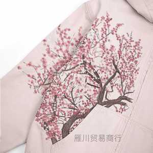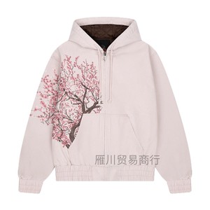 跨境复古秋冬樱花印花连帽卫衣y2k街头宽松潮流休闲拉链外套男女