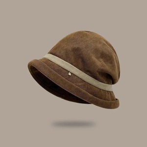 新款复古秋冬堆堆时尚子女百搭灯芯绒渔夫帽出游盆帽休闲显脸保暖