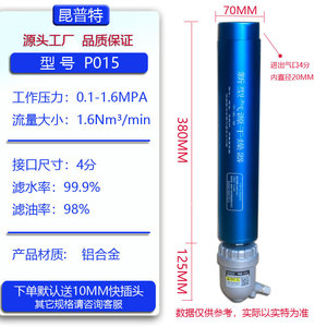 昆普特空压机精密气源干燥器油水过滤器气泵除水除油无滤芯分离器