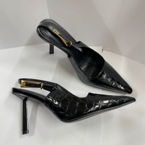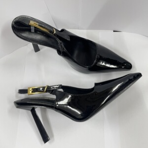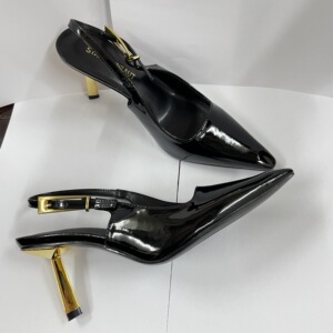 WO惠州市欧美包头后空凉鞋小金条一字带搭扣御姐尖头细跟漆皮显瘦