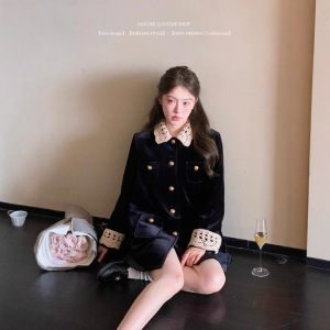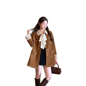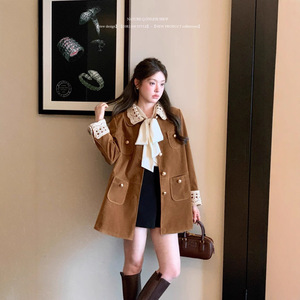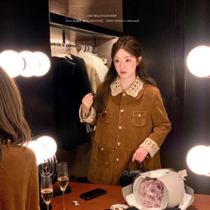 杨小卷 MIU系复古翻领中长款麂皮/丝绒外套工装风衣女 美拉德穿搭